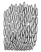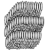 (Ilustração de como as moléculas estão dispostas na mesofase esmética - vistas de frente, visão bidimensional) (Figura retirada do artigo "Cristais Líquidos: um sistema complexo de simples aplicações” do professor Ivan Helmuth Bechtold)