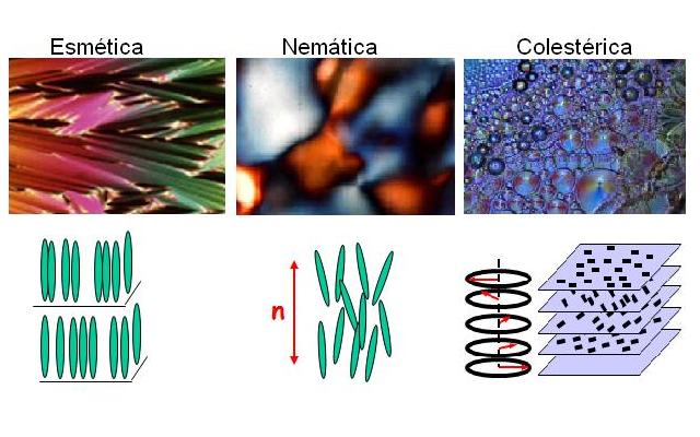 se classificam de acordo com suas propriedades estruturais e ordem molecular em três mesofases: esméticos ,nemáticos e colestéricos. Trataremos brevemente de cada um deles: