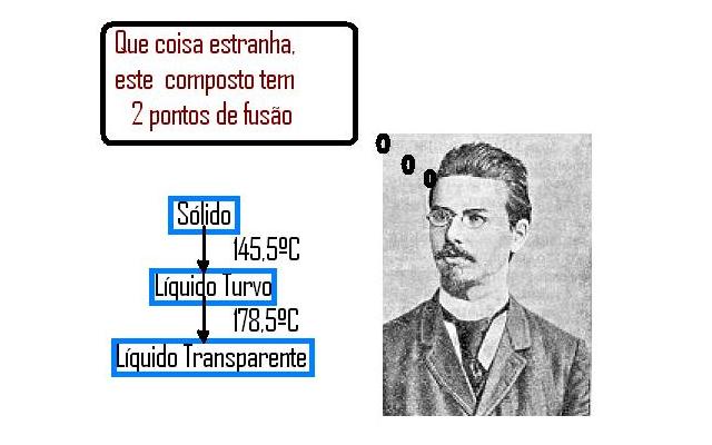 substância que havia sintetizado recentemente a partir do colesterol. Reinitzer tentou caracterizar o novo composto medindo a sua temperatura de fusão. Ao
